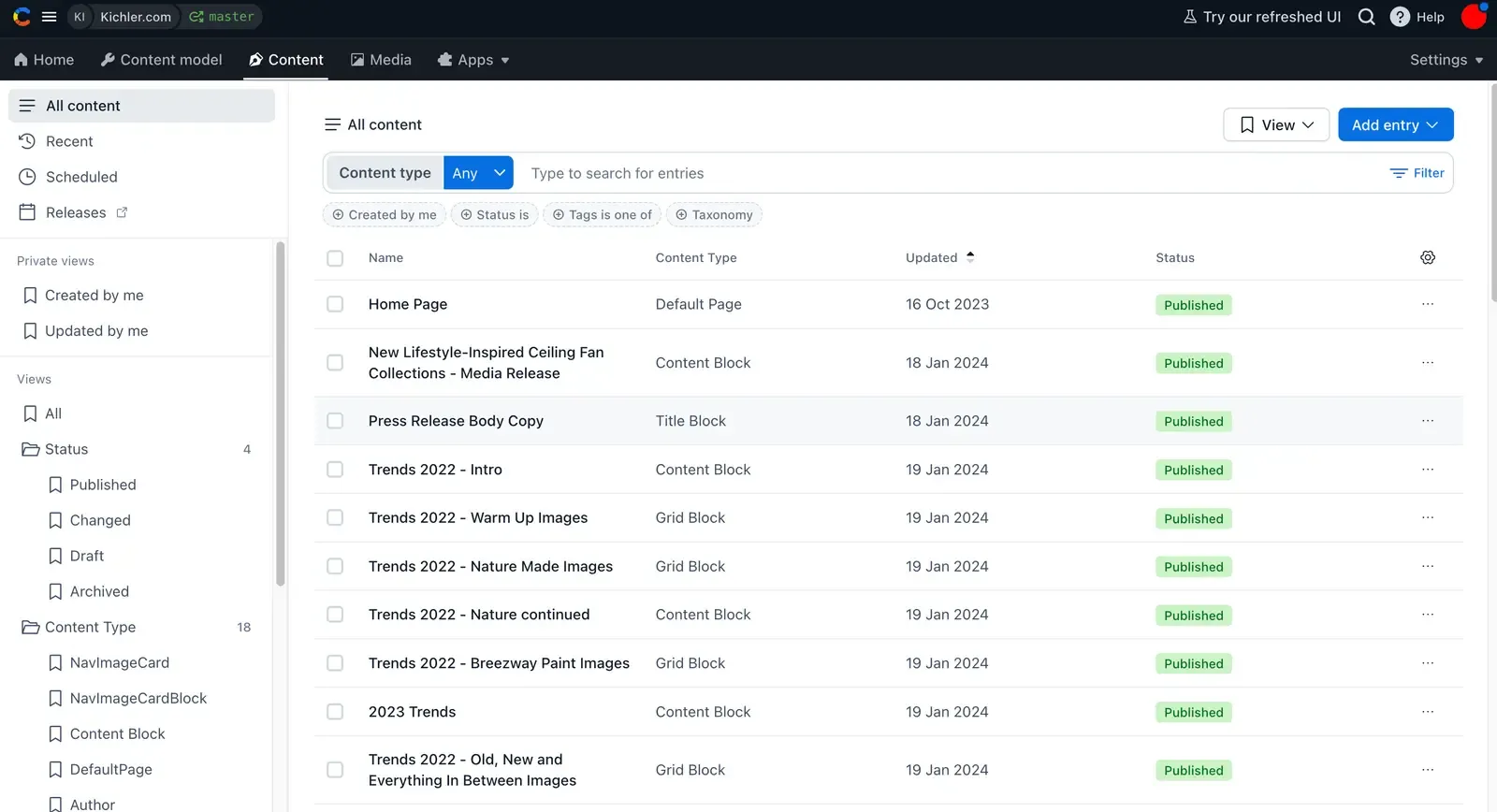 Through the implementation of Contentful, we developed a highly efficient CMS that maximized productivity for Kichler Lighting's content editors. We developed a new system of content blocks significantly improved their workflow, enabling seamless markeing copy integration and management of product data.